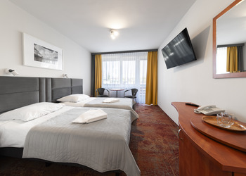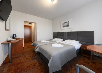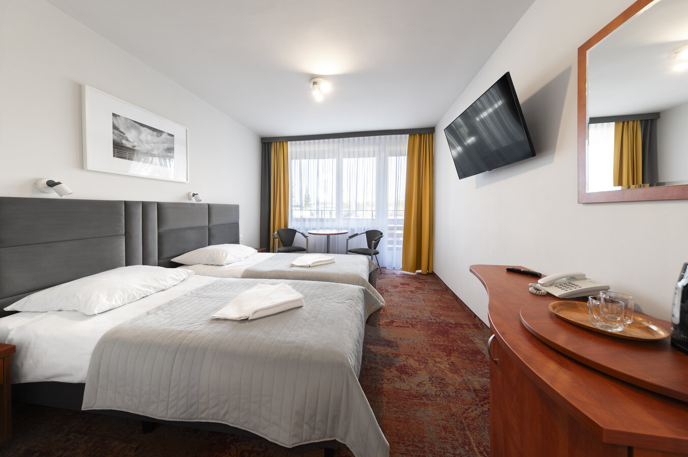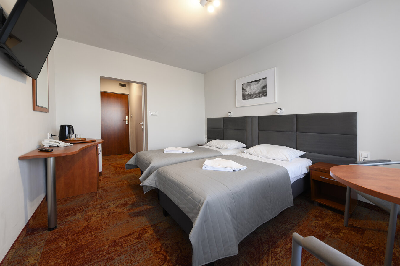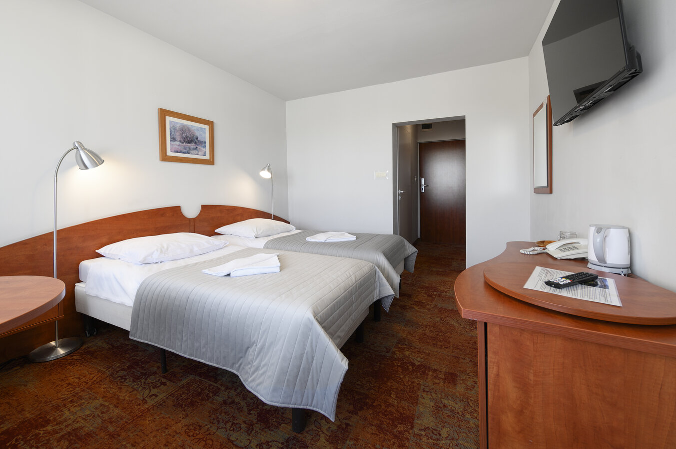 PrzejdźBudynek A oferuje pokoje dwuosobowe typu standard i komfort - wszystkie z balkonem i łazienką. Pokoje wyposażone są w dwa łóżka pojedyncze z możliwością łączenia, telefon, chłodziarkę oraz sprzęt plażowy. Istnieje możliwość wstawienia dostawki do pokoju.